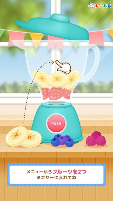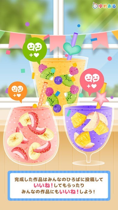 App Storeより引用フルーツやデコレーションを自由に選んで自分だけの「スムージー」が作れる子供向けのアプリです。