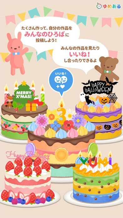 親子で一緒に楽しみながら自分だけのパーティーケーキが作れる知育アプリです。スワイプなどの簡単な操作のみなので小さなお子様も楽しめます。スポンジやクリーム、デコレーションなど自分の好きな組み合わせで飾り付けができます。デコレーションはハロウィンやクリスマスのパーツも含めて全180種類と豊富ですので、アイデア次第で組み合わせは無限大に楽しめます。完成したケーキは作品としてみんなの広場に投稿し、他のユーザーと共有ができます。