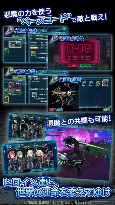 RPGには欠かせない成長要素も充実。ヒロインたちが持つ特殊能力を使って悪魔を捕らえられれば、キャラクターを強化することができます。どの悪魔を利用するか、ここでも試行錯誤が必要となり、その選択肢は無限大です。
