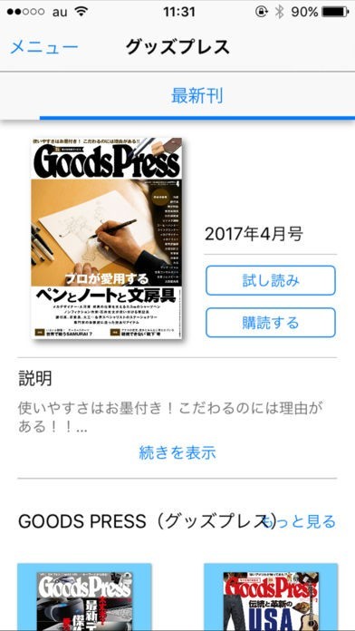 ワンランク上のオシャレな生活をするために必要なアイテムを紹介している雑誌、GOODS PRESSがアプリで読めるようになりました。アプリで購読すれば本屋さんに雑誌を買いに行ったり、購入した本が部屋でかさばってしまうこともないというメリットがあります。普段雑誌を読んでいる時のような感覚でページをめくることができるので違和感のない操作性を楽しむことができます。購読を自動で継続する機能もあるのでGOODS PRESSファンにはたまらない仕様になっています。