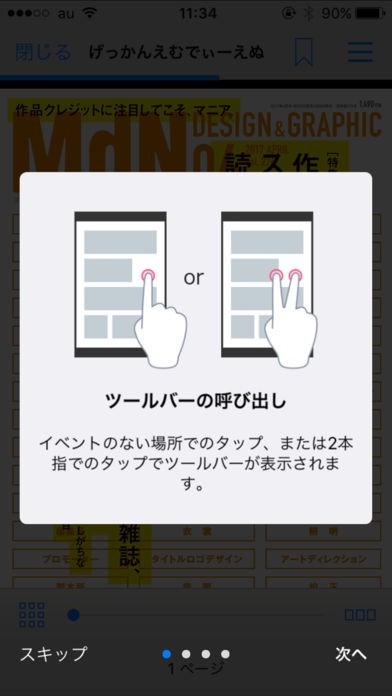 細部までしっかりと見たい人気クリエーターの作品や、テクニック紹介も専用ビュアーのズーム機能でしっかりと確認することができます。画面をタップでツールバーの呼び出しができ、しおり機能も搭載されているのでいつでも気になった場所をすぐに開くことができます。