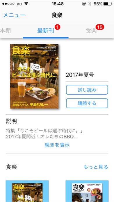 「食楽」は厳選して掲載されているお酒と食事がおいしいレストランや料理人から直伝の料理のレシピ、おすすめキッチンアイテムなどの蜀に関する様々な情報を紹介している季刊誌をスマートフォンで閲覧することができるアプリとなります。3か月に一度の発刊を自動的にダウンロードできる定期購読契約が可能なほか、試し読みもすることができます。