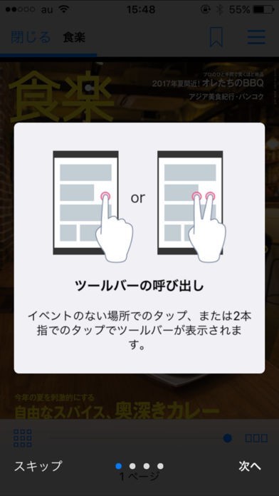 食に関する幅広い情報を3か月に一度提供している季刊誌をスマートフォンで閲覧することができるようになっていて、キッチンアイテムからおすすめのレストランまで様々な情報が掲載されています。
