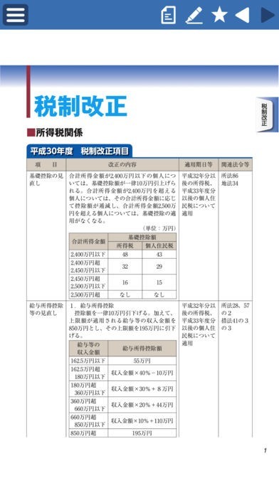 平成30年度版なので最新情報が掲載されています。税制改正された内容や適用期日などの掲載もあるため、とても親切な内容となっています。また沢山の情報が載ってますが、検索機能があるので必要な情報をすぐに確認することができます。