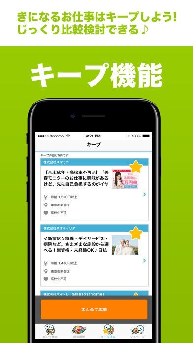 75万件以上のアルバイト情報を網羅!「キープリスト」に求人を保管してまとめて応募出来る!