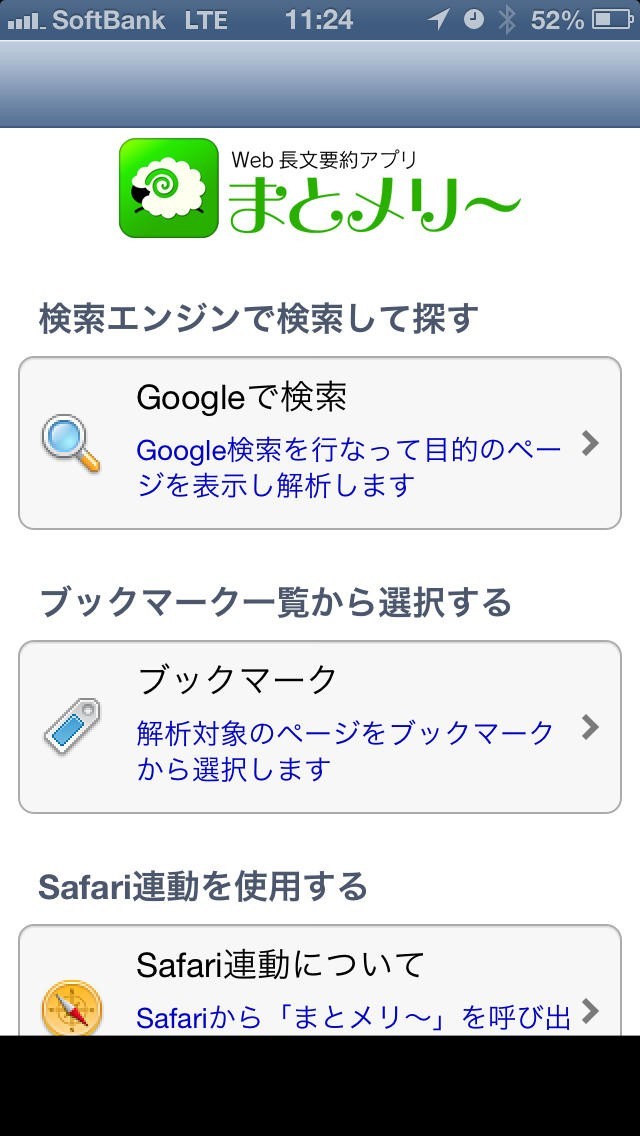 『まとメリ~』は、長い文章を読みやすく要約してくれるアプリとして、形態素解析エンジン「言語郎」を搭載しています。レポート作成のためにたくさんの資料を読まなければいけない学生さんにも最適。メインとして用意されたウェブページの長文を要約する機能を使えば、アプリが単語出現頻度解析を自動的に行って、要約を作成してくれます。「検索エンジンで検索して探す」機能や「ブックマーク一覧から選択する」機能なども充実しており、用途によって使い分けられるのも嬉しいポイント。たくさんの資料を必要とする場合でも、アプリで要約しながら読み進めることで、本当に必要なウェブサイトだけを抽出することができるでしょう。