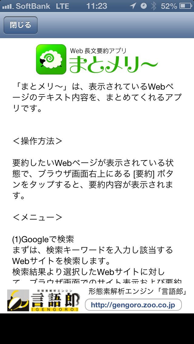 資料などを見つけるにもインターネットは非常に便利ですが、学術的なサイトや資料的なデータを集めているサイトだとどうしても文章量が膨大になりがちで、見るべきポイントがどこなのかをわかりづらいものですがまとメリ~があれば、そんな悩みは簡単に解決することが出来ます。このアプリは形態素解析エンジンを搭載していて、長文の中から重要な部分をピックアップして要約表示することができるため、短時間で重要部分だけをチェックすることが可能になります。