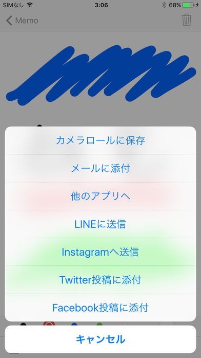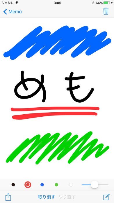 白いキャンバスに手書きでメモを書くことができます。手書きなので、文字だけでなく図や絵を書きこむことも自由自在。キーボード操作が苦手なお年寄りにも適しているといえるでしょう。