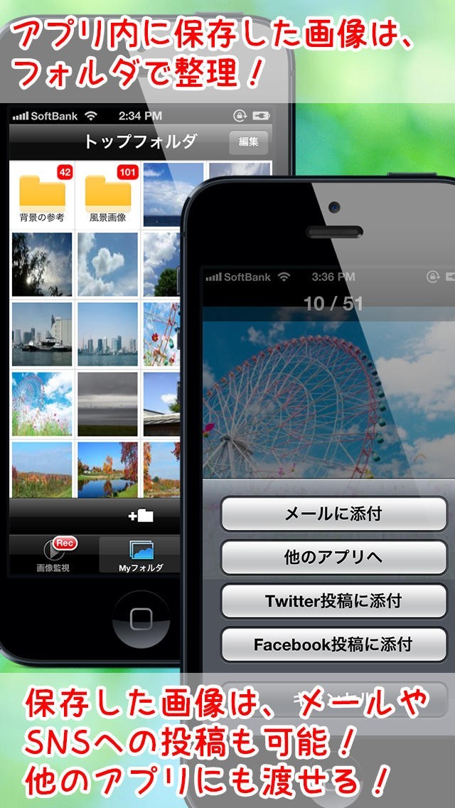 ・画像を他のアプリへ転送。(Twitter,Facebook,LINE他)