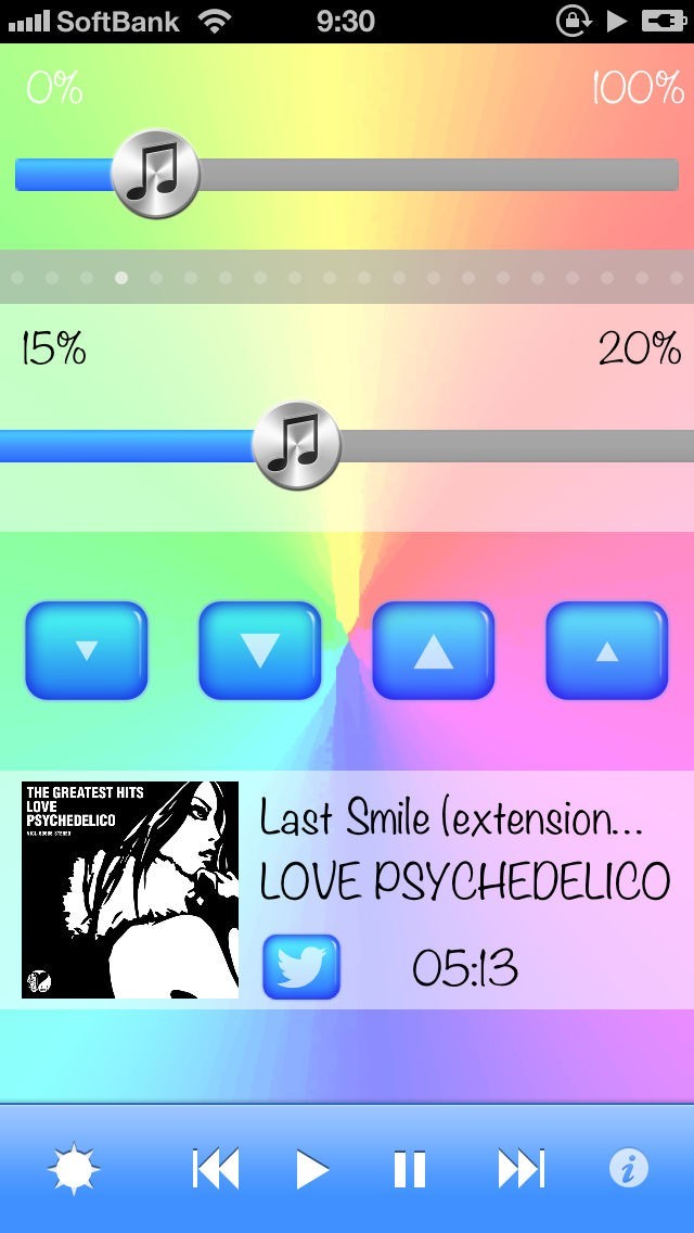 通常、1画面の『ボリュームスライダー』は0〜100%ですが、このアプリでは、1画面に5%毎の『ボリュームスライダー』も表示されます。