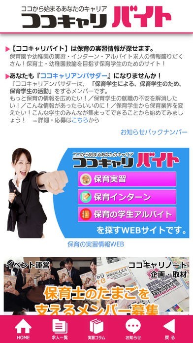 保育園・幼稚園の実習・ボランティア情報は「ココキャリバイト」のスクリーンショット