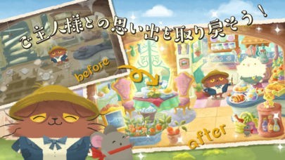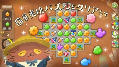 猫のニャッホ 〜ニャ・ミゼラブル〜パズルで物語を進めようは絵本のような世界観とストーリー性をもっているパズルゲームアプリとなっています。パズルゲームパートは同じ色の3つ以上のピースを並べて消すマッチ3パズルとなっています。主人公の猫のニャッホがお屋敷を再建していくストーリーで達成感がわかりやすくなっています。