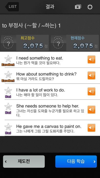 - 북마크 기능이 있어 원하는 문장을 따로 저장하여 집중 훈련할 수 있습니다.