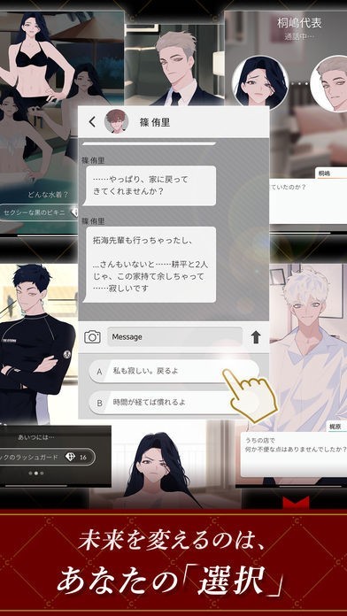 物語の途中に選択した"行動"や"セリフ"によって、ストーリー展開が変化していきます。どのような結末を迎えるのか、キャラクターの本当の姿は暴かれるのか、想像を膨らませながら物語を展開させましょう!