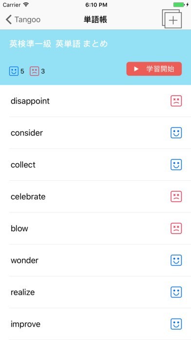 使って行くうちに苦手な単語と得意な単語が記録されるので、苦手な単語を繰り返し勉強できます。