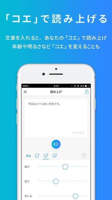 入力したテキストを自分の「コエ」で読み上げることができます。