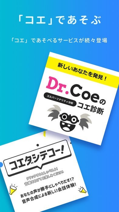 すぐに遊べるサービスをご提供。「コエ」を使った新たなサービスを順次追加していきます。