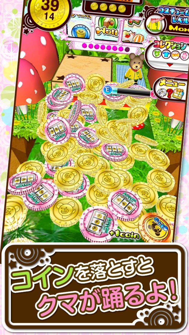 ゲームセンターにあるようなコインゲームをスマホで楽しむことが出来ます。可愛いキャラクターの様々な服装をゲームを通して集めることが出来るので収集する楽しさも同時に味わうことが出来ます。