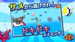 泳いでサメから逃げるシンプルなゲーム性と操作で、逃げる事に集中してプレイしたい際に最適、タップ操作のテクニックが攻略の鍵