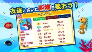 タップ操作で楽しめる「サメから逃げろ!」はユーザー同士のランキング対決に対応しているカジュアルゲームで、追いかけてくるサメからひたすら逃げるギミックになっています。画面をタップすればするほどユニットが浮上してくれますし、イルカ等のお助けキャラを活用しながら距離を伸ばしていけるのが機能の利点でしょう。水中の魚が障害物として現れるので、スリルや緊張感を味わいながらプレイしていけます。またサメや魚のグラフィックがドット絵なので、昔懐かしい気分で遊べる特徴があります。