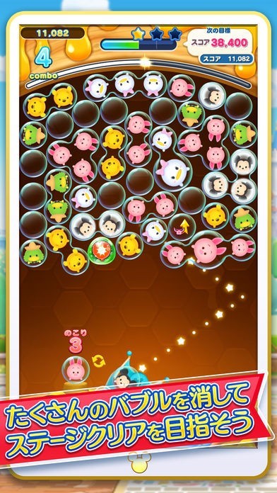 ツムバブルは、連鎖して消えるのが楽しくスコアが大きく伸びます。コンボを発生させるがポイントで、ツムを素早く発射していきます。バブルがどんどん弾けていく様子がかわいです。ツムを増やしてスキルを使うのが効果的で、スコアを有効的に伸ばすことができます。オリジナルの衣装を着たツムもいます。癒されながら楽しく遊べます。子供にも操作が簡単で親子で一緒にできます。