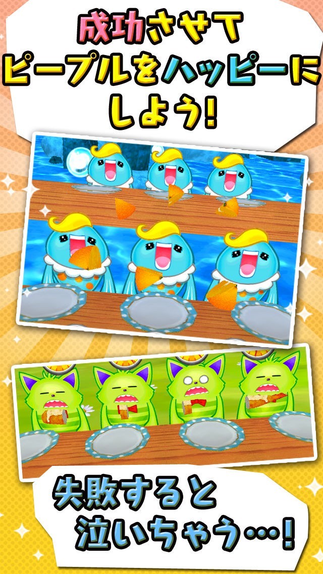 "はらぺこピープル!"は、はらぺこなピープル達を満腹にして幸せにすべく、食べ物を人数分に均等にカットするパズルゲームとなっています。机の上に置かれた食べ物を、座っているキャラクターの人数分にカットすると言った内容で、いかに均等にカットするかがポイントとなっています。ちょっと大きさに偏りがあるとステージクリアにならなず、また大きさだけでなく見た目も評価される為、カットする位置や仕方を考慮してプレイする必要があります。全320のステージと、100種類以上の食べ物を収録しており、いずれも3Dで描かれた食べ物やビジュアルがリアルで楽しいアプリとなっています。