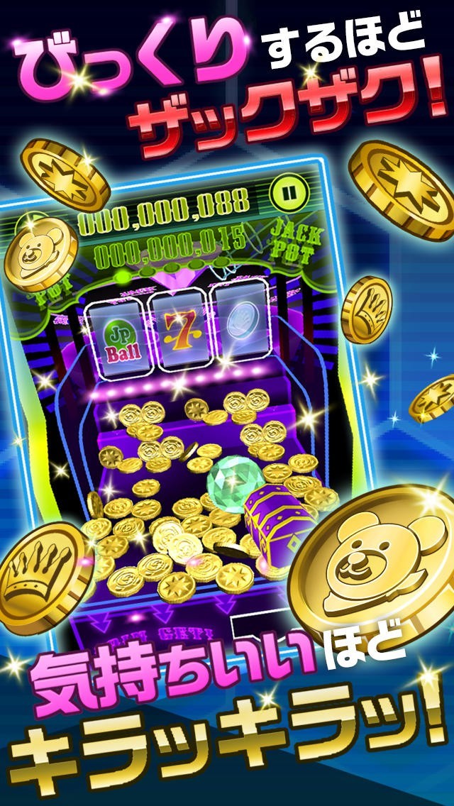 タップしてコインを投入すると画面上のスロットが回転します。揃った絵柄に応じたコインの枚数を獲得できるシンプルなコインゲームです。シンプルな遊び方ながら、光や音の華やかな演出で興奮すること間違いなしです。