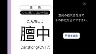 暗記カードの暗記方法には、ツボ名を隠して出題する方法や、全てのツボをシャッフルした出題方法、経絡ごとのシャッフルなど様々な暗記機能が搭載されているので自分に合った出題方法で暗記学習を進めていくことが可能です。