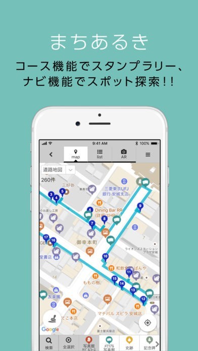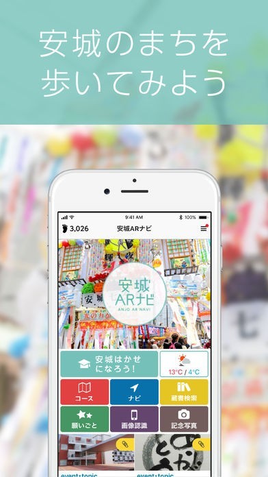 App Storeより引用安城ARナビは、愛知県安城市にある様々な名所やおすすめの見どころを巡るためのナビゲーションアプリです。