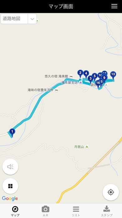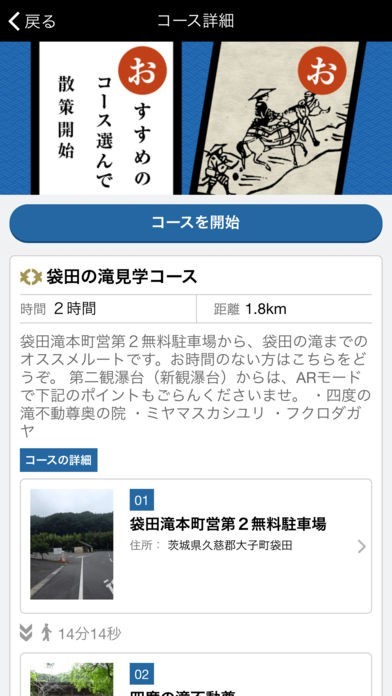 「コース」機能では、テーマごとに設定してあるルートから好きなコースを選び、スタンプを集めながら大子町の歴史に触れることができます。