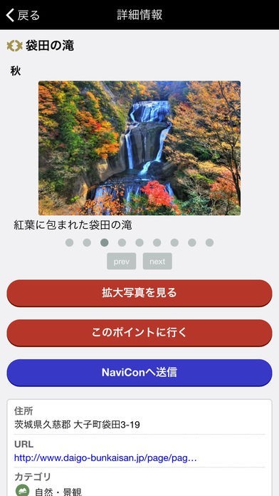 ●NaviConを利用してカーナビに地点を送信できます。「NaviCon」についての詳細は、サポートページをご覧ください。
