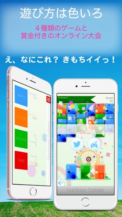 「爽快!ソリティア」は、シンプルながらも数字を順番に選ぶ快感を味わうことができるパズルゲームです。うまくすべての数字を回収することができた時の達成感は筆舌に尽くしがたいものがあります。数字が描かれたカードの残り方によってはゲームをクリアすることができなくなってしまうケースもあるため、先を読んでプレイする力が要求されます。しっかりと計画を立てて行動する必要があるため、子供たちが先を見据えて行動する力を養うために良い働きをしてくれるパズルゲームです。かわいい建物や遊園地の背景が登場するなど子供たちに悪い影響を与えるようなシーンが登場しないことも安心です。