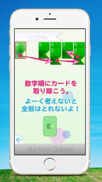 「爽快!ソリティア - Numbers Solitaire 2 -」は、連続する数字が書かれたカードを順番に取り除いていくゲームです。数字は大きくなるものを選んでも小さくものを選んでも連続している数字であれば問題ありません。3種類のルールが用意されており、複数の色ごとに数字を選択しなければいけないモードやどんどんカードが追加されていく状態でどこまでプレイを続けられるかに挑戦することもできます。また、コンピュータと対戦することもできます。