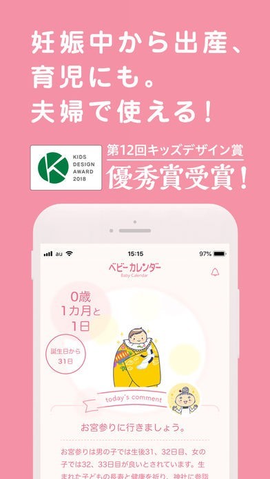 妊娠から出産、子育てに合わせた情報を配信してくれるベビーカレンダーアプリ