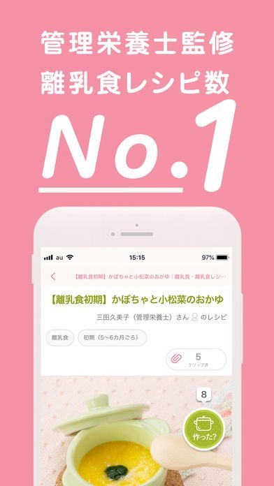 助産師や管理栄養士に相談出来る機能が付いていて、離乳食のレシピが調べられるのも嬉しい