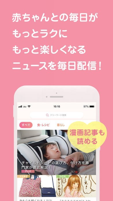 ニュース機能があります。出産予定日や子どもの年齢を入力しておくと、妊娠週や月齢に合った情報が毎日届けられます。ママが役立つ情報なので育児の参考になり、毎日の励みになります。