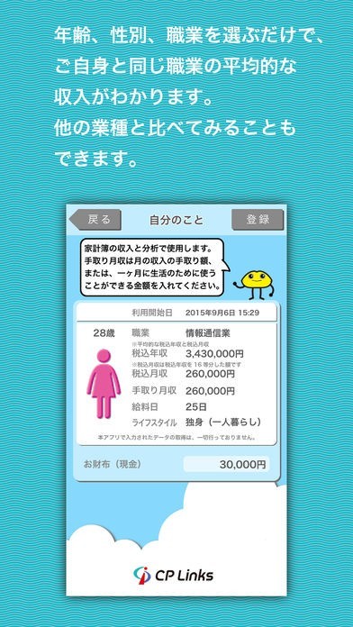 自分の年齢・性別・職業を入力すると、同業者の平均的な収入が分かります。業種を変えれば自分と同じ年齢・性別の人の平均収入なども検索できるので、自分と比較して参考にできます。