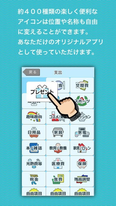 家庭簿とカレンダーを1つまとめることもできるので、お金の収支や予定を同時に見れます。しかも、使えるアイコンはなんと400種類以上!!自分だけのオリジナルアプリを作ろう‼