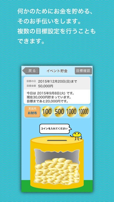 複数の目標設定ができ、貯金の手助けもしてくれる‼