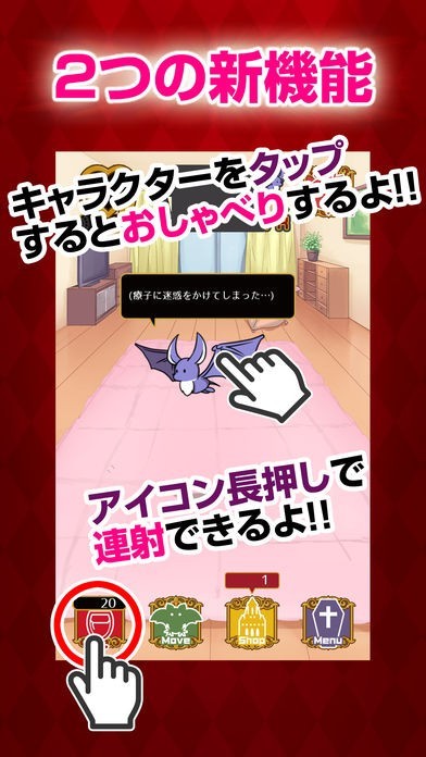 「彼の為の食事」を集めて彼を育てていくと、ストーリーが進んで彼の姿がどんどん変わり、だんだんに元の姿に近づいていく育成ゲームの要素と、「どうして彼がコウモリになってしまったのか」という秘密を解き明かしていく新感覚育成げーむアプリです。