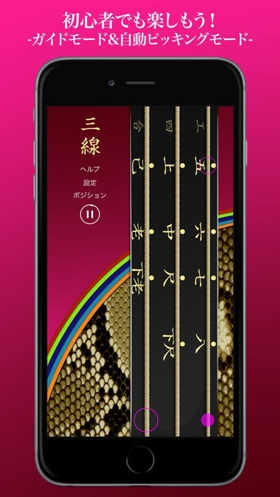 ガイドを使用して自分で引く前に実際どういう風に演奏をするのかを知ることが出来ます。片手が塞がっていた場合でも演奏できる自動ピッキング機能があるのでどこでも簡単に三線を演奏することが出来ます。