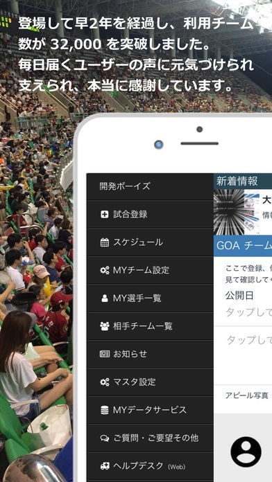 アプリに入力されたデータを速報形式で登録したユーザーに配信することができます。配信されるのはスコアブックに入力したデータなので速報用に別途入力する必要はなく、記録をつけると自動的にデータの実況配信が行えます。