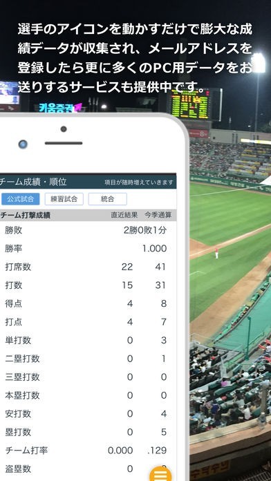野球の試合データを管理できるスコアブックアプリです。 試合における各選手のデータ入力やリアルタイム分析、速報データの送信などが可能で野球チームを総合的にデータ管理できます。操作は入力したい項目をタップして記入するだけのシンプル操作で初めての人でも簡単に扱えます。記入済みデータの修正や編集も手早くできるので試合の流れに乗りながら正しいデータを入力できます。