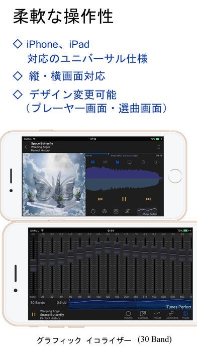 音質の調整を行えるイコライザーではなんと30もの周波数の設定が行なえます。自分好みの音になるように調整してみましょう。この他にも左右別の音量調整や無音スキップなど豊富な機能が備わっています。