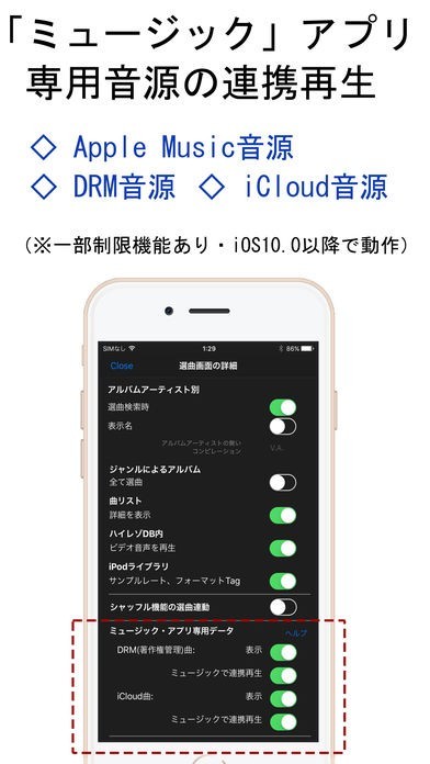 音質やエフェクトの調節に対応していて、ハイレゾ音源が聴けるのも利点でした