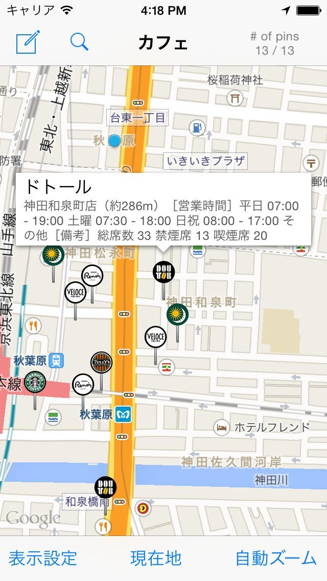 ・2016年6月1日:アプリの無料化を行います。この日より、カフェマップを無料でダウンロードしていただけます。有料版から機能などに変更はありません。