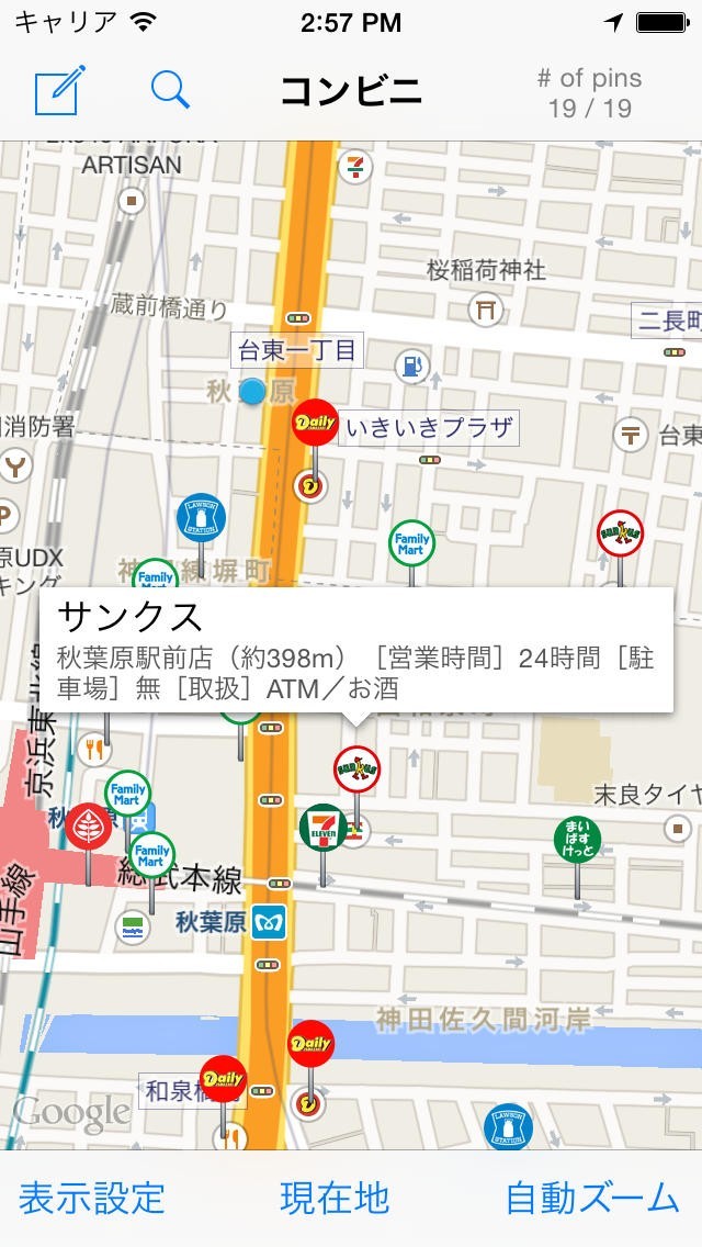 - マップ・ナビ スポット検索 コンビニエンスストアを探せる