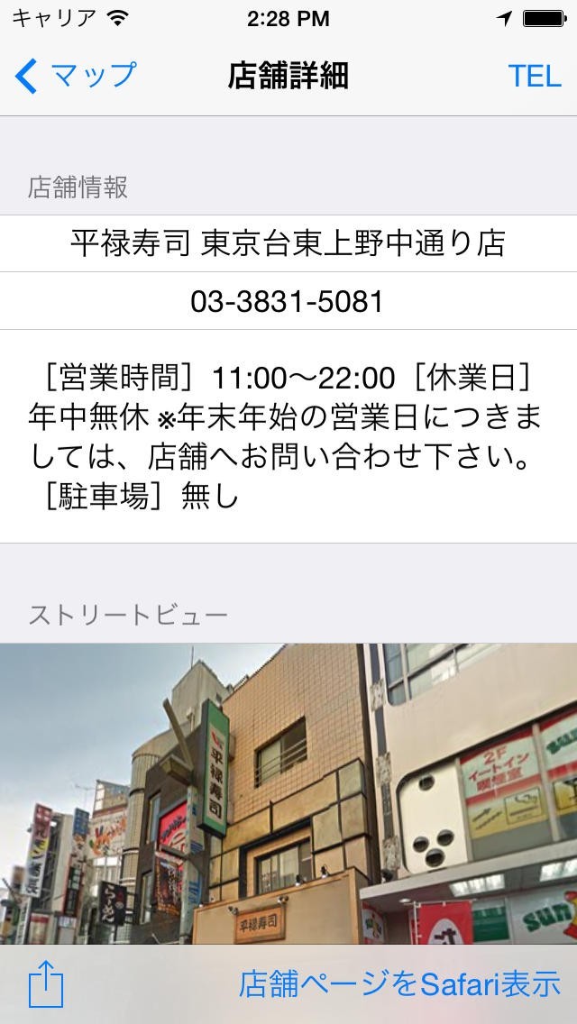 ・2017年5月1日:マップ画面の一部に、終了を告知する説明文を常に表示します。回転寿司店の検索自体は行えます。