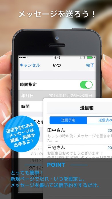 大切な日に送信するメッセージを忘れないうちに予約することができる!