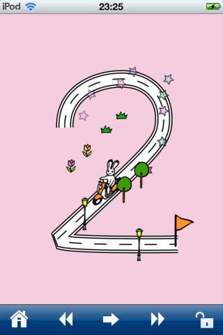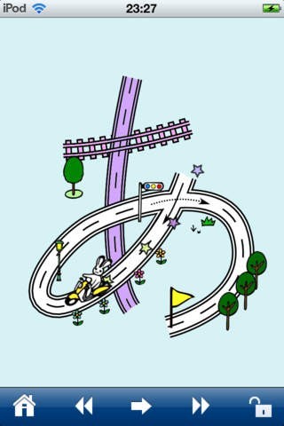 文字の1画ごとに道と、乗り物(スタート地点)と旗(ゴール地点)が表示されます。